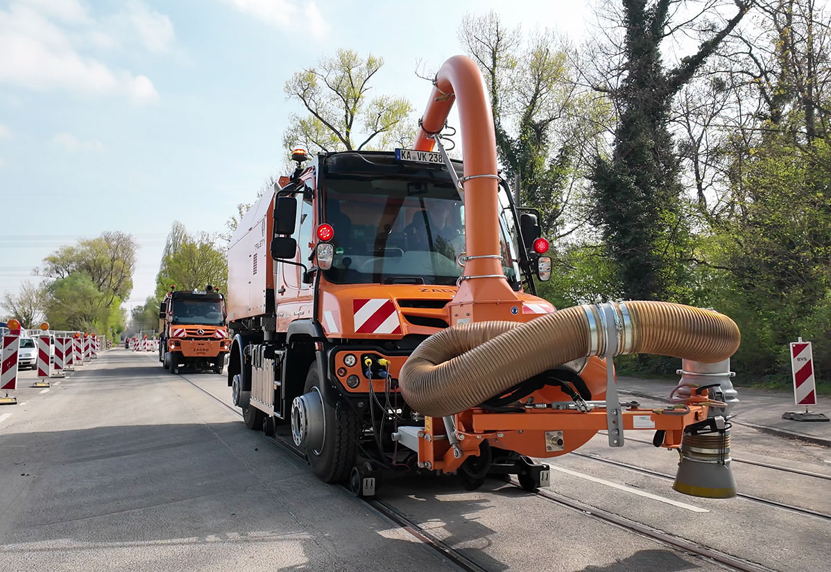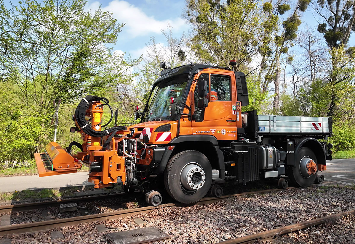 Verkehrsbetriebe Karlsruhe GmbH relies on the proven road-rail vehicles from ZAGRO Bahn- und Baumaschinen GmbH. We delivered four ZAGRO U 423 road-rail vehicles, which are perfectly suited to the challenges of urban operations and the rail world. Whether for rail maintenance and cleaning, vegetation control or shunting work, ZAGRO Unimogs offer reliable and flexible support all year round, around the clock.