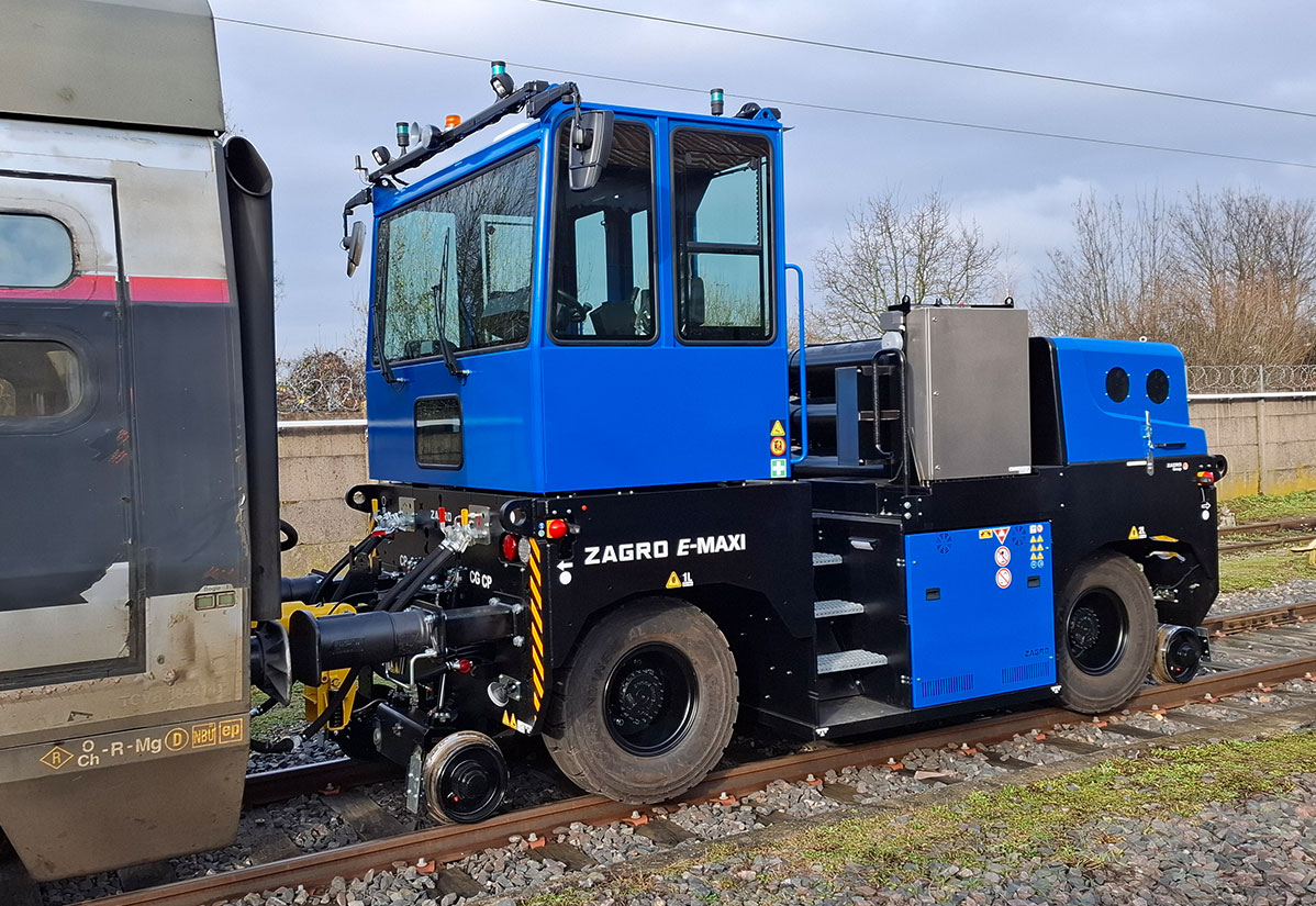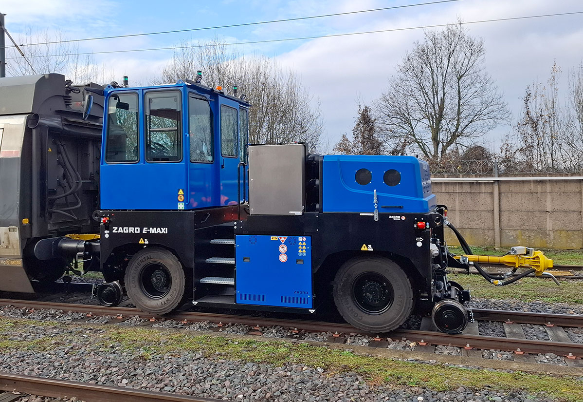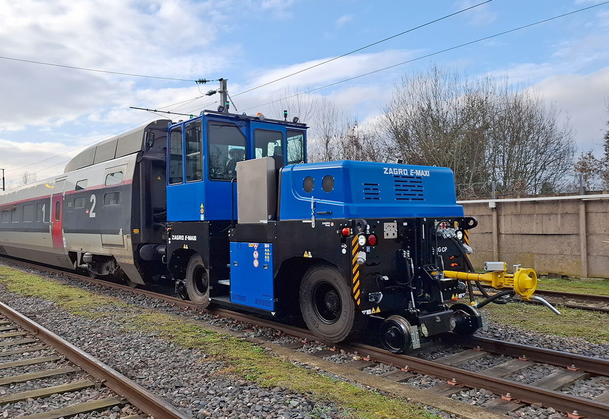 Mit dem elektrischen Rangierfahrzeug ZAGRO E-MAXI XXL hat die ZAGRO Bahn- und Baumaschinen GmbH ein leistungsstarkes, emissionsfreies Rangierfahrzeug an die SNCF geliefert. Das Fahrzeug kommt in einer Wartungswerkstatt für Hochgeschwindigkeitszüge der französischen Staatsbahn SNCF in Bischheim zum Einsatz – sowohl in der Halle als auch auf den angrenzenden Werksgleisen.